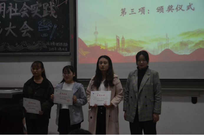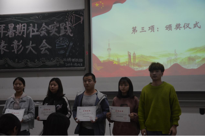 大會伊始,青協(xié)部長李素馨對本次社會實踐進行總結(jié)報告,加深了同學(xué)們對社會實踐活動的認(rèn)識與理解。隨后,由團委副書記馬思聰學(xué)姐宣讀表彰決定,本次大會重點表彰了院級社會實踐優(yōu)秀團隊及個人。并由許金鑫老師和主席團為優(yōu)秀團體和個人進行了頒獎,對他們的實踐精神予以肯定。之后,社會實踐優(yōu)秀團隊隊長吳依陽、社會實踐先進個人代表張晨卓進行了發(fā)言。接著大會進行了社會實踐優(yōu)秀DV展示,優(yōu)秀的攝影作品帶同學(xué)們領(lǐng)略了社會實踐的精神風(fēng)貌,為大家樹立了榜樣。大會最后,由許金鑫老師做了社會實踐活動的總結(jié),對獲獎的個人和團隊予以肯定,希望經(jīng)濟管理學(xué)院社會實踐活動愈加豐富,希望更多的同學(xué)積極、認(rèn)真地參與到暑期社會實踐中,書寫自己的實踐故事。