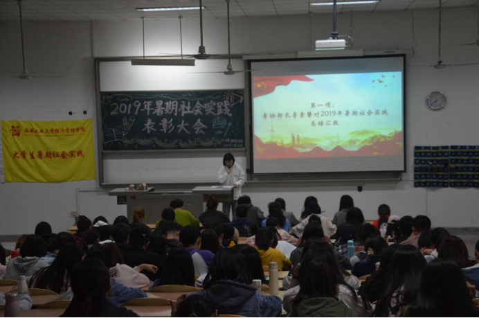 西安工業(yè)大學(xué)經(jīng)濟管理學(xué)院暑期社會實踐總結(jié)表彰大會于11月14日下午六點半在教一402隆重召開。蒞臨此次活動的嘉賓有團委書記許金鑫老師以及經(jīng)濟管理學(xué)院主席團,會議由青協(xié)干事夏維婷主持。
