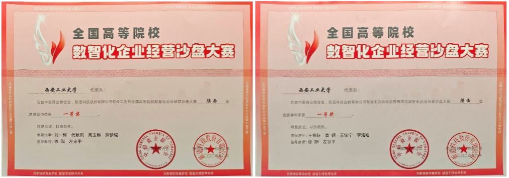 2025第二十一屆全國高等院校數(shù)智化企業(yè)經(jīng)營沙盤大賽,是為深入貫徹《教育強(qiáng)國建設(shè)規(guī)劃綱要(2024-2035)》、《國務(wù)院辦公廳關(guān)于深化產(chǎn)教融合的若干意?》等文件精神,配合國家高校創(chuàng)新創(chuàng)業(yè)人才培養(yǎng)燎原計(jì)劃,由中國商業(yè)聯(lián)合會(huì)攜手新道科技股份有限公司舉辦,面向全國高校經(jīng)管相關(guān)專業(yè)學(xué)生的高校商業(yè)模擬賽事。本屆總決賽有來自全國高校的117支隊(duì)伍參賽。在5月陜西省省賽中,我院兩支代表隊(duì)分別以全場(chǎng)總分第一、二名榮獲省級(jí)一等獎(jiǎng)兩項(xiàng)。
