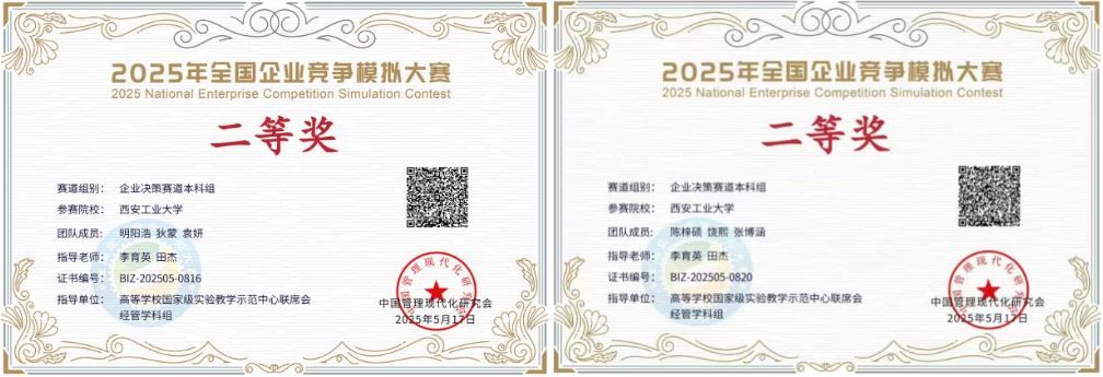 2025年全國企業(yè)競(jìng)爭(zhēng)模擬大賽由中國管理現(xiàn)代化研究會(huì)、高等學(xué)校國家級(jí)實(shí)驗(yàn)教學(xué)示范中心聯(lián)席會(huì)經(jīng)管學(xué)科組指導(dǎo),中國管理現(xiàn)代化研究會(huì)決策模擬專業(yè)委員會(huì)主辦,通過模擬企業(yè)運(yùn)營與決策流程,全方位評(píng)估參賽者的市場(chǎng)分析能力,培養(yǎng)學(xué)生的戰(zhàn)略規(guī)劃、財(cái)務(wù)管理以及團(tuán)隊(duì)協(xié)作能力。本屆大賽有千余所高校,超9000支隊(duì)伍報(bào)名參賽,我院學(xué)子榮獲全國二等獎(jiǎng)6項(xiàng)、三等獎(jiǎng)3項(xiàng),在獲獎(jiǎng)等級(jí)與數(shù)量方面均實(shí)現(xiàn)了歷史性突破。