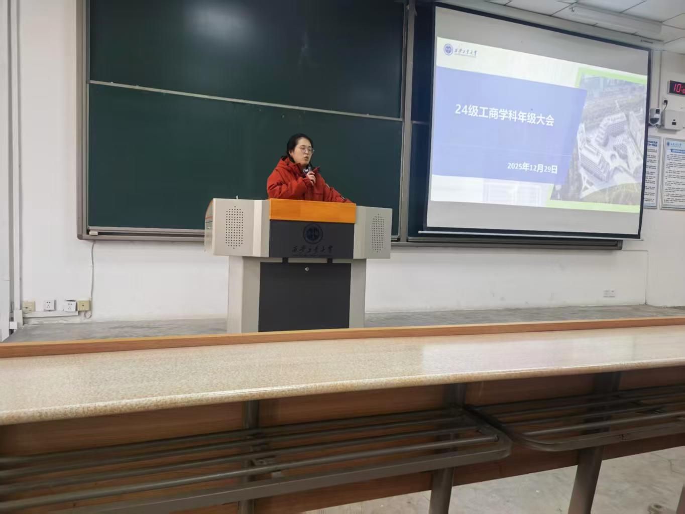 12月29日,2024級工商學(xué)科年級大會(huì)于教1-102教室舉行。本次會(huì)議由輔導(dǎo)員孫會(huì)主持,圍繞“誠信應(yīng)考、安全護(hù)航、自律成長”三大主題展開,旨在強(qiáng)化學(xué)生的紀(jì)律意識(shí)、筑牢安全觀念,引導(dǎo)大家做好生涯規(guī)劃。